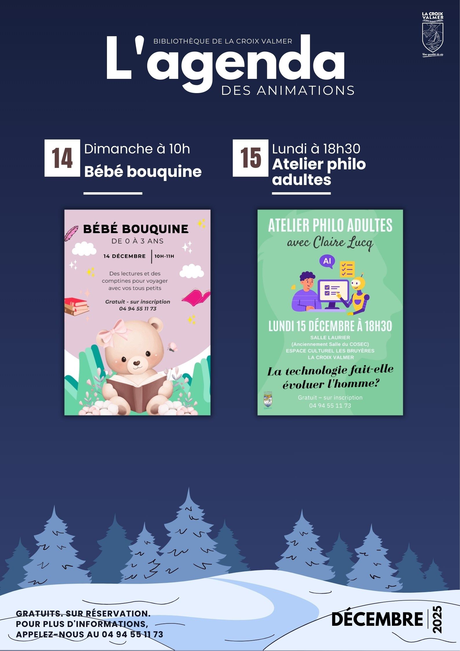 TOUTES LES ANIMATIONS SONT GRATUITES, sur inscription.